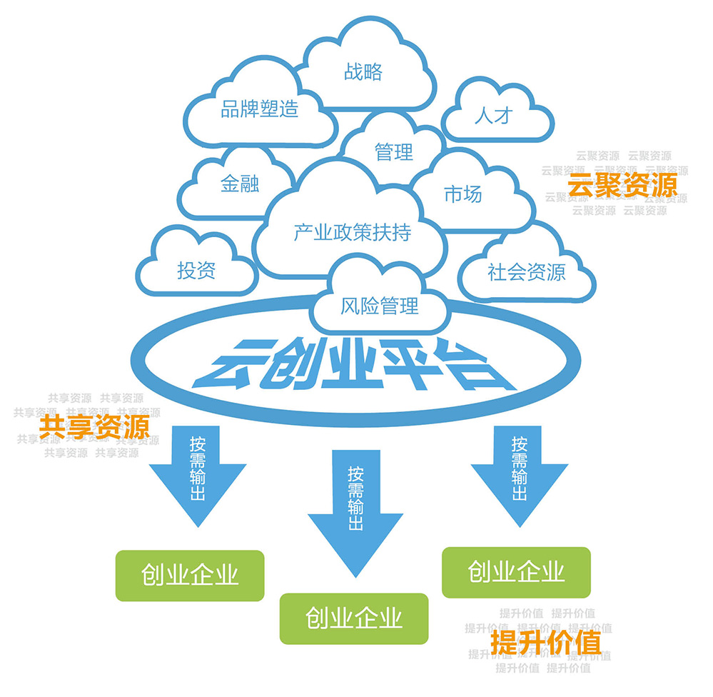 云創(chuàng)業(yè)模式精髓在于打造一個完善的、成長潛能強大的云創(chuàng)業(yè)生態(tài)圈,系統(tǒng)化地解決創(chuàng)業(yè)難題,為創(chuàng)業(yè)者提供全創(chuàng)業(yè)價值鏈整合平臺運營服務(wù)。
