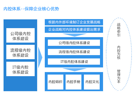 由具有豐富內(nèi)控體系建設(shè)實踐經(jīng)驗的專家團隊,分三階段實施企業(yè)內(nèi)控體系建設(shè),以構(gòu)建全面風險管理體系,有效地防范企業(yè)經(jīng)營風險,促進企業(yè)高效經(jīng)營。即,以企業(yè)戰(zhàn)略為指導、以運營環(huán)境的分析評估結(jié)果為基礎(chǔ),建立公司級的內(nèi)部控制體系;以核心產(chǎn)品、關(guān)鍵業(yè)務(wù)模塊為重點,對現(xiàn)有管理制度與流程體系進行風險評估,建立流程級內(nèi)控體系;對一般性控制缺陷進行分析,建立IT級內(nèi)控體系。