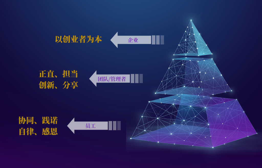 面對撲面而來的創(chuàng)新時代,弘信創(chuàng)業(yè)工場進(jìn)一步明確“以創(chuàng)業(yè)者為本”的核心理念,針對團(tuán)隊(duì)與管理層提出“正直、擔(dān)當(dāng)、創(chuàng)新、分享”的價值觀要求,將“協(xié)同、踐諾、自律、感恩”作為每一位員工都應(yīng)秉承的底層價值觀,以全新的精神面貌迎接二次創(chuàng)業(yè)。